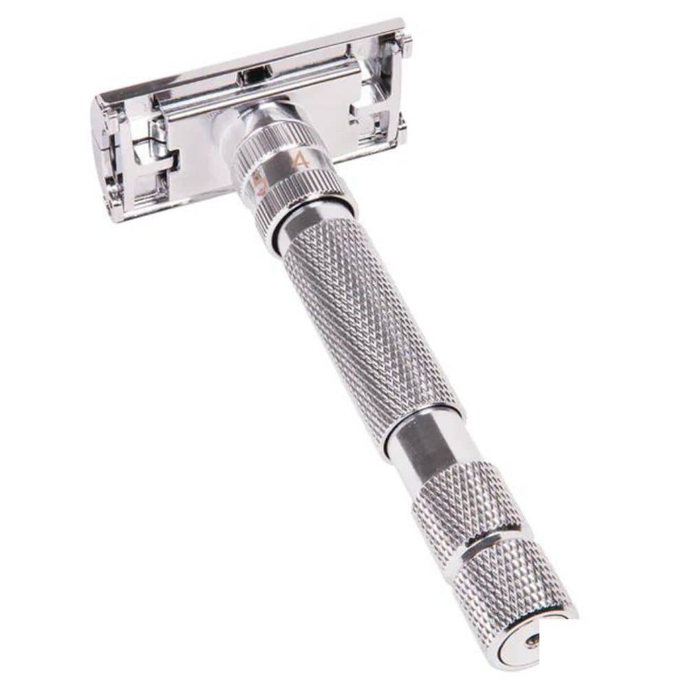 The Rockwell T2 Safety Razor in White Chrome is a premium, dial-adjustable double-edge razor created for men who want a smooth, personalised shave without irritation. With a simple twist of the handle, you can instantly increase or reduce blade exposure, making it ideal for everything from sensitive skin to coarse beard growth.